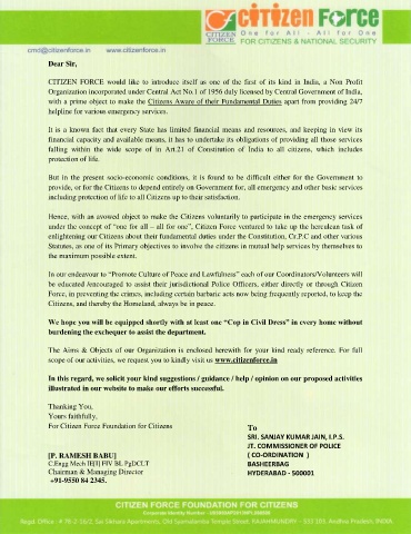 scope of our activities, we request you to kindly visit us www.citizenforce.in