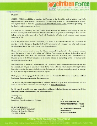 scope of our activities, we request you to kindly visit us www.citizenforce.in