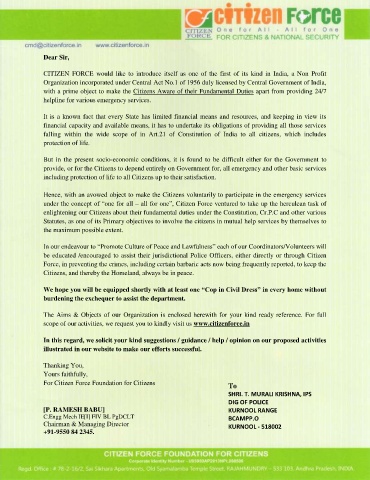 scope of our activities, we request you to kindly visit us www.citizenforce.in