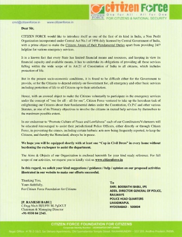 For Citizen Force Foundation for Citizens ADDL. DIRECTOR GENERAL OF POLICE,