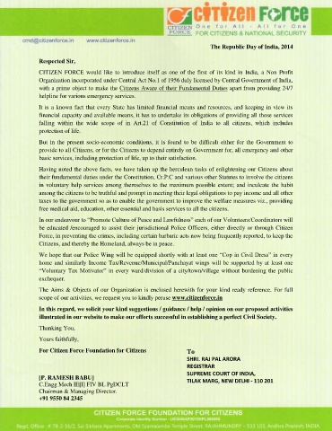 scope of our activities, we request you to kindly peruse www.citizenforce.in