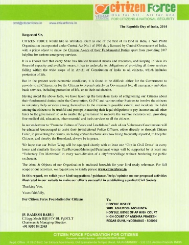 scope of our activities, we request you to kindly peruse www.citizenforce.in