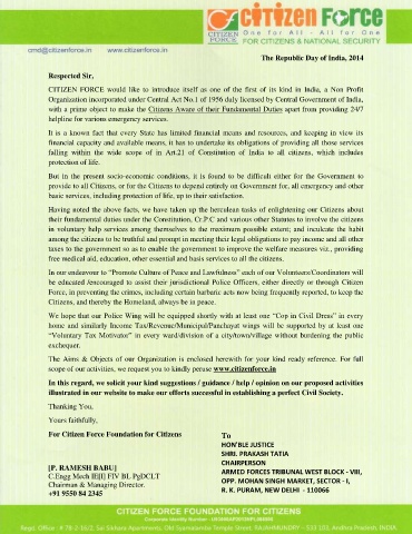 scope of our activities, we request you to kindly peruse www.citizenforce.in