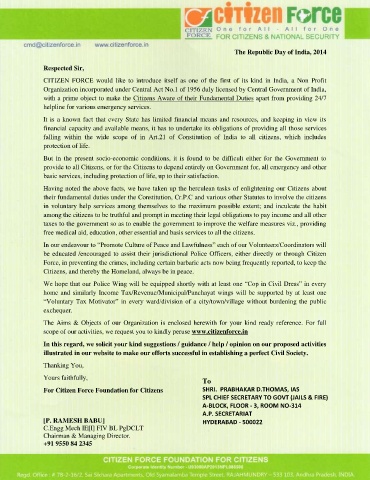 scope of our activities, we request you to kindly peruse www.citizenforce.in