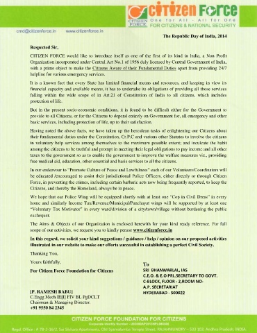 scope of our activities, we request you to kindly peruse www.citizenforce.in