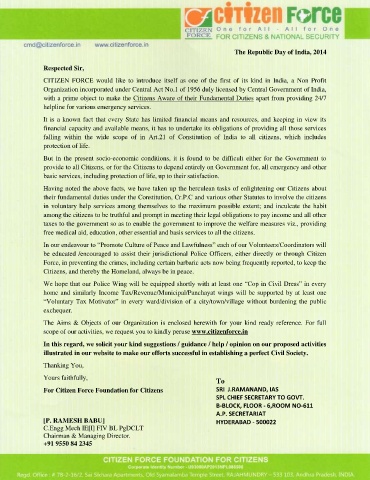 scope of our activities, we request you to kindly peruse www.citizenforce.in
