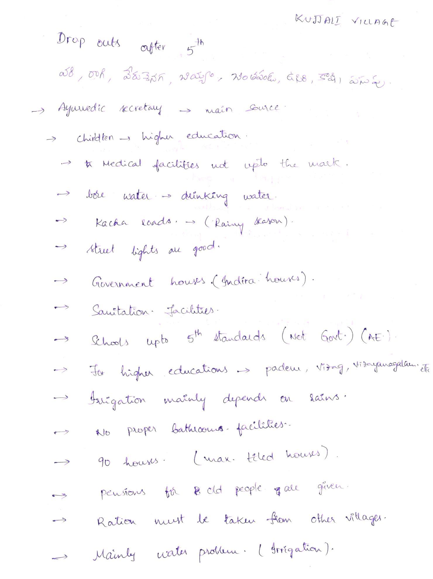 Survey Reports by Student Chapter AUCE (A) - Kujjali Village Paderu Mandal