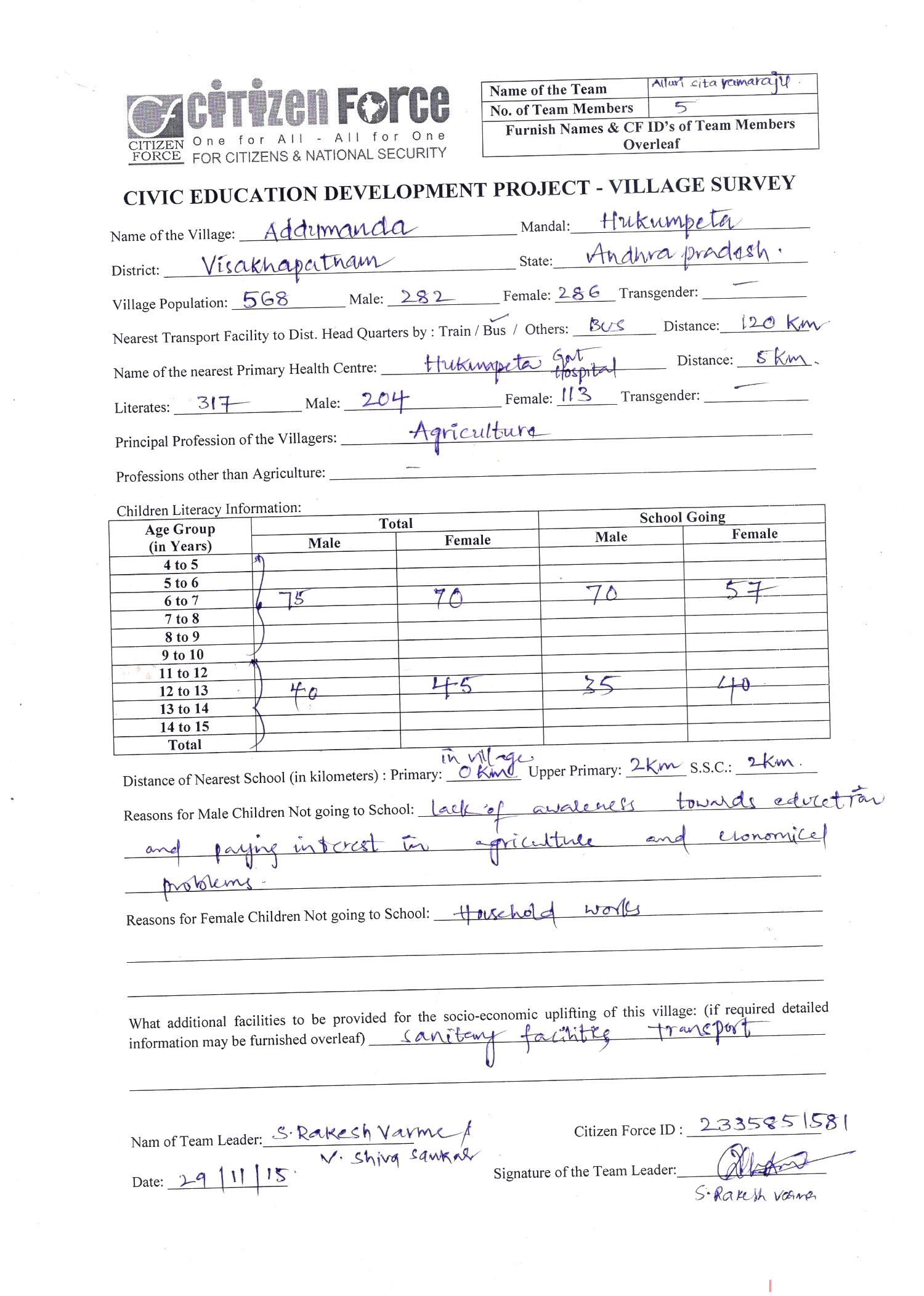 Survey Reports by Student Chapter AUCE (A) - Addumanda Village Paderu Mandal