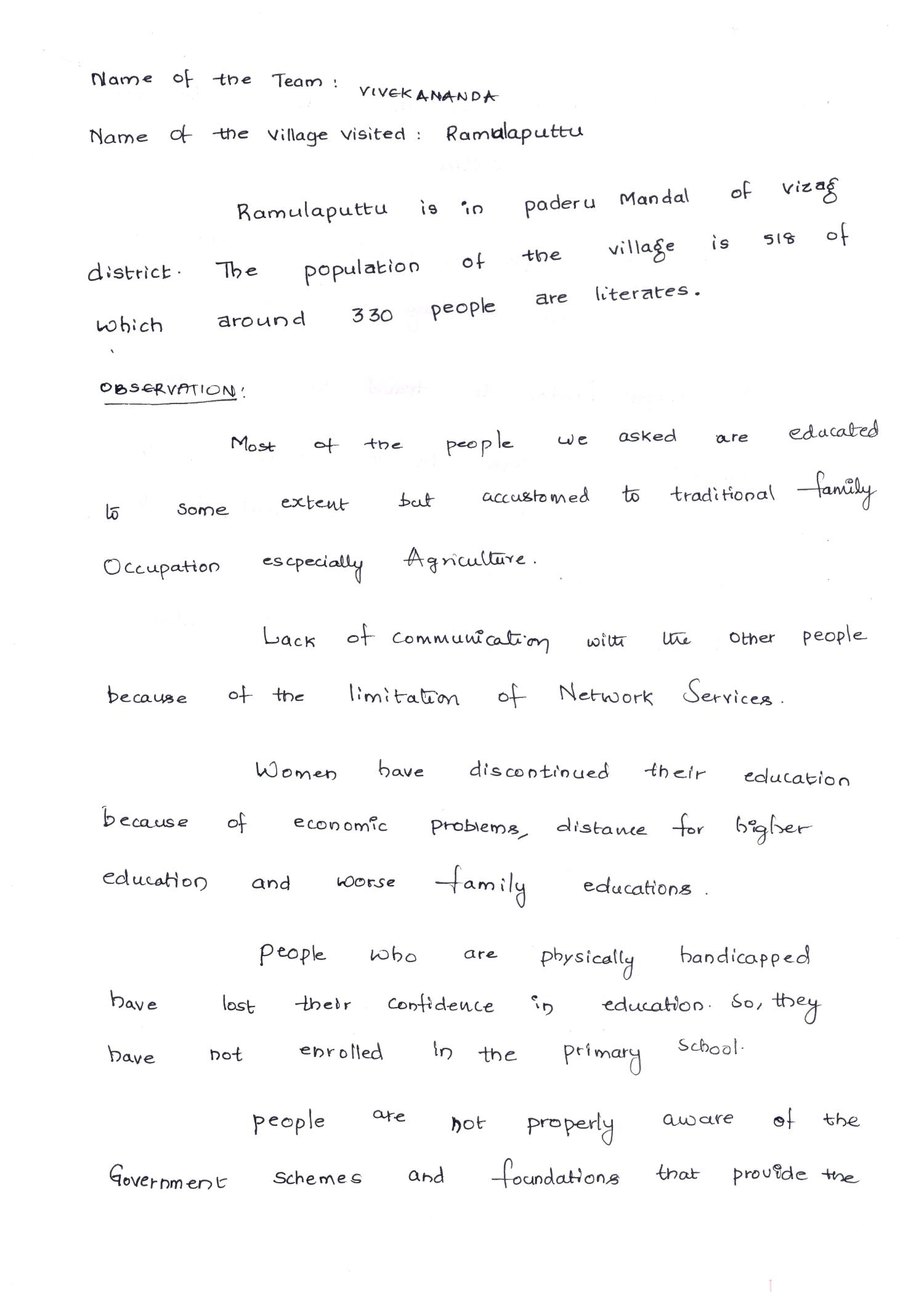 Survey Reports by Student Chapter AUCE (A) - Ramulaputtu Village Paderu Mandal