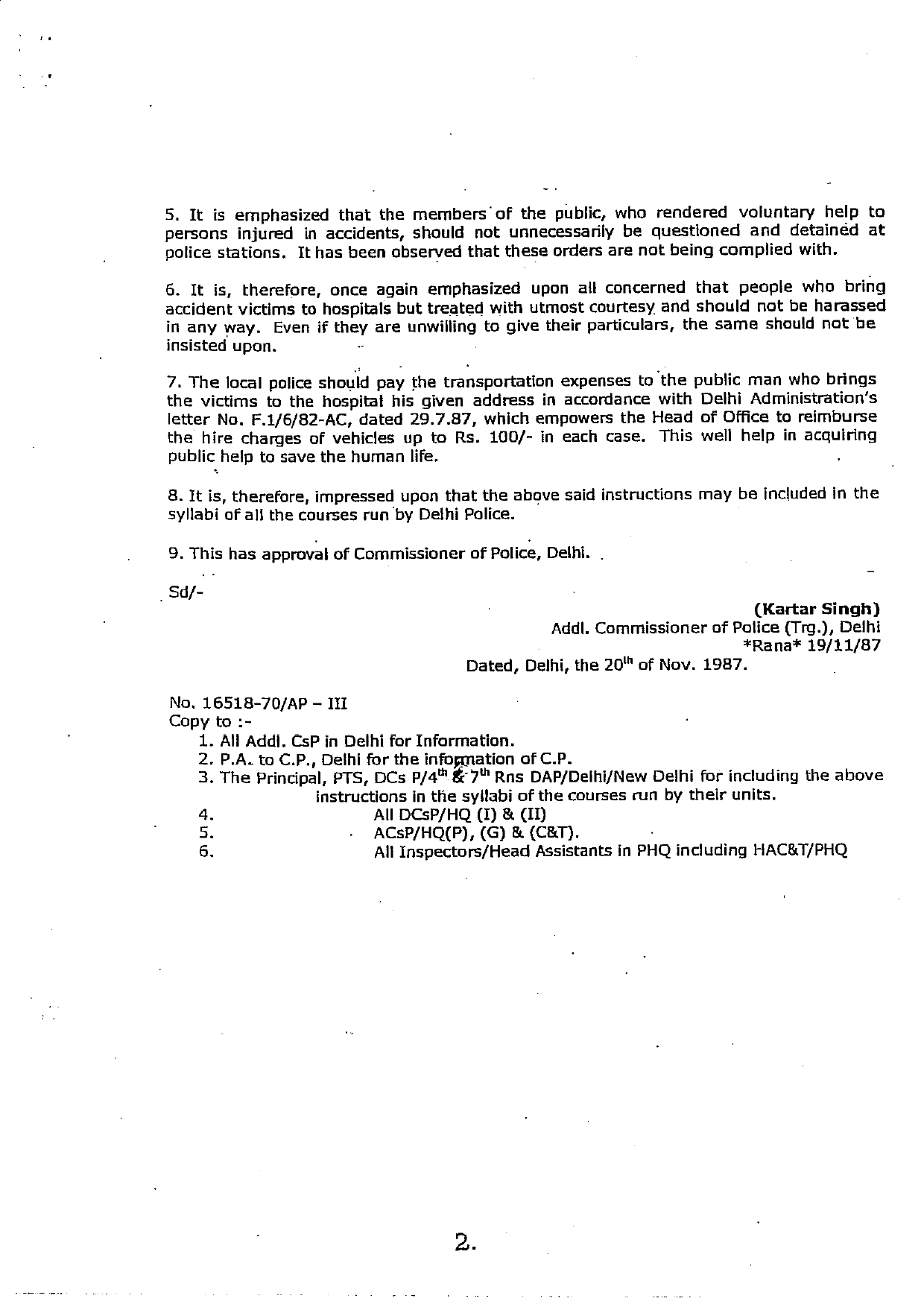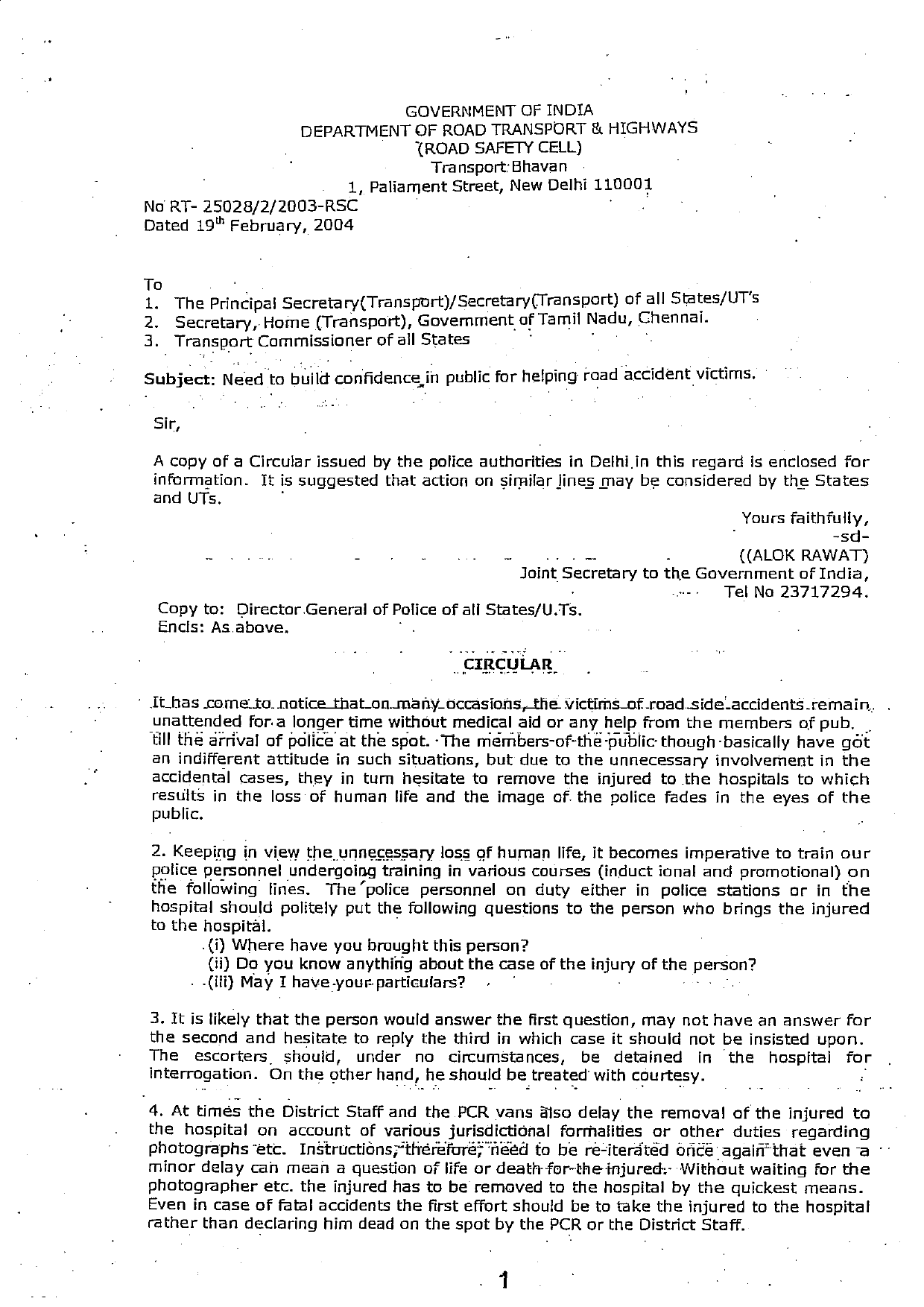 Rescue of Accident Victims_Union Govt Letter 19 Feb 2004