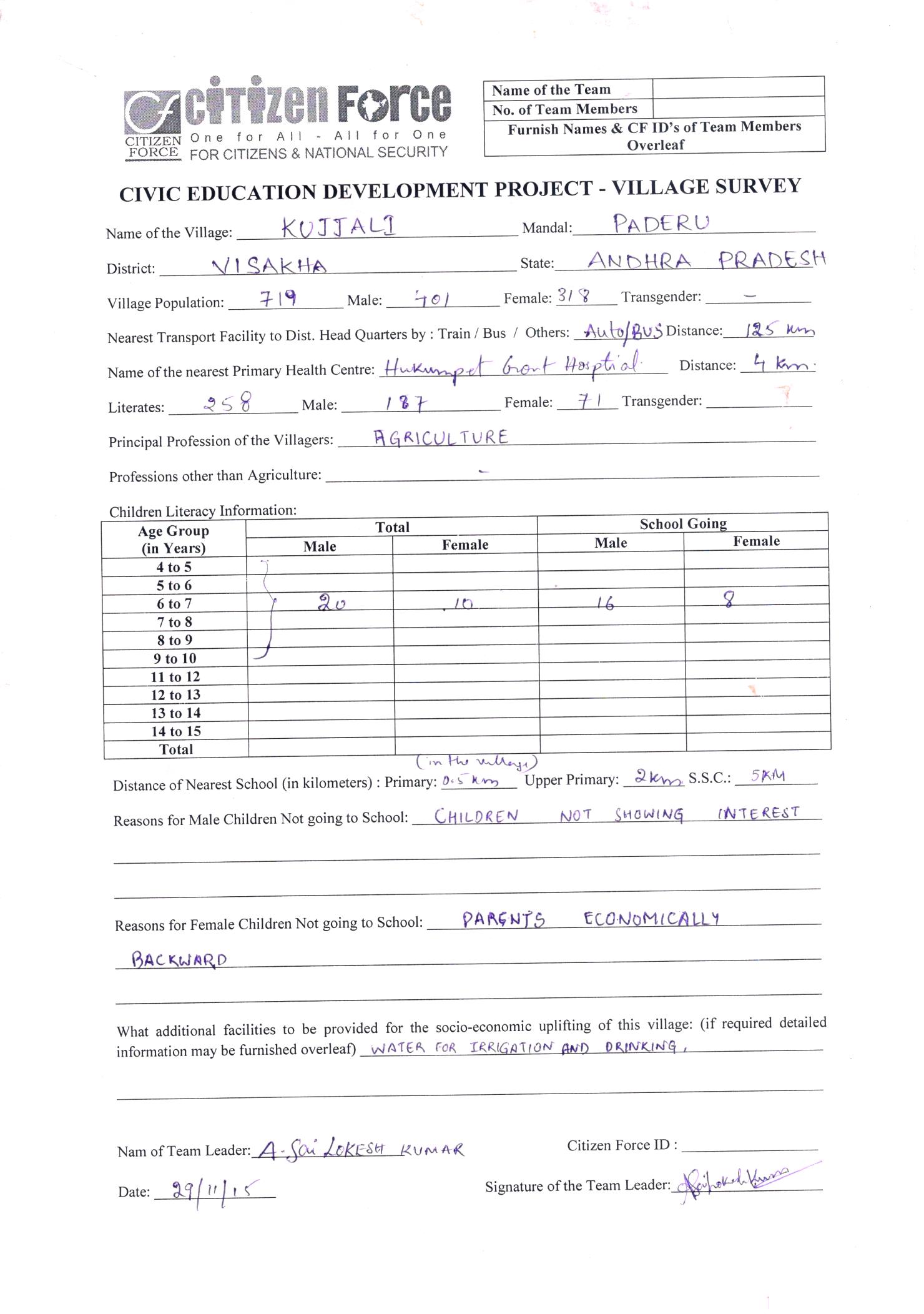 Survey Reports by Student Chapter AUCE (A) - Kujjali Village Paderu Mandal