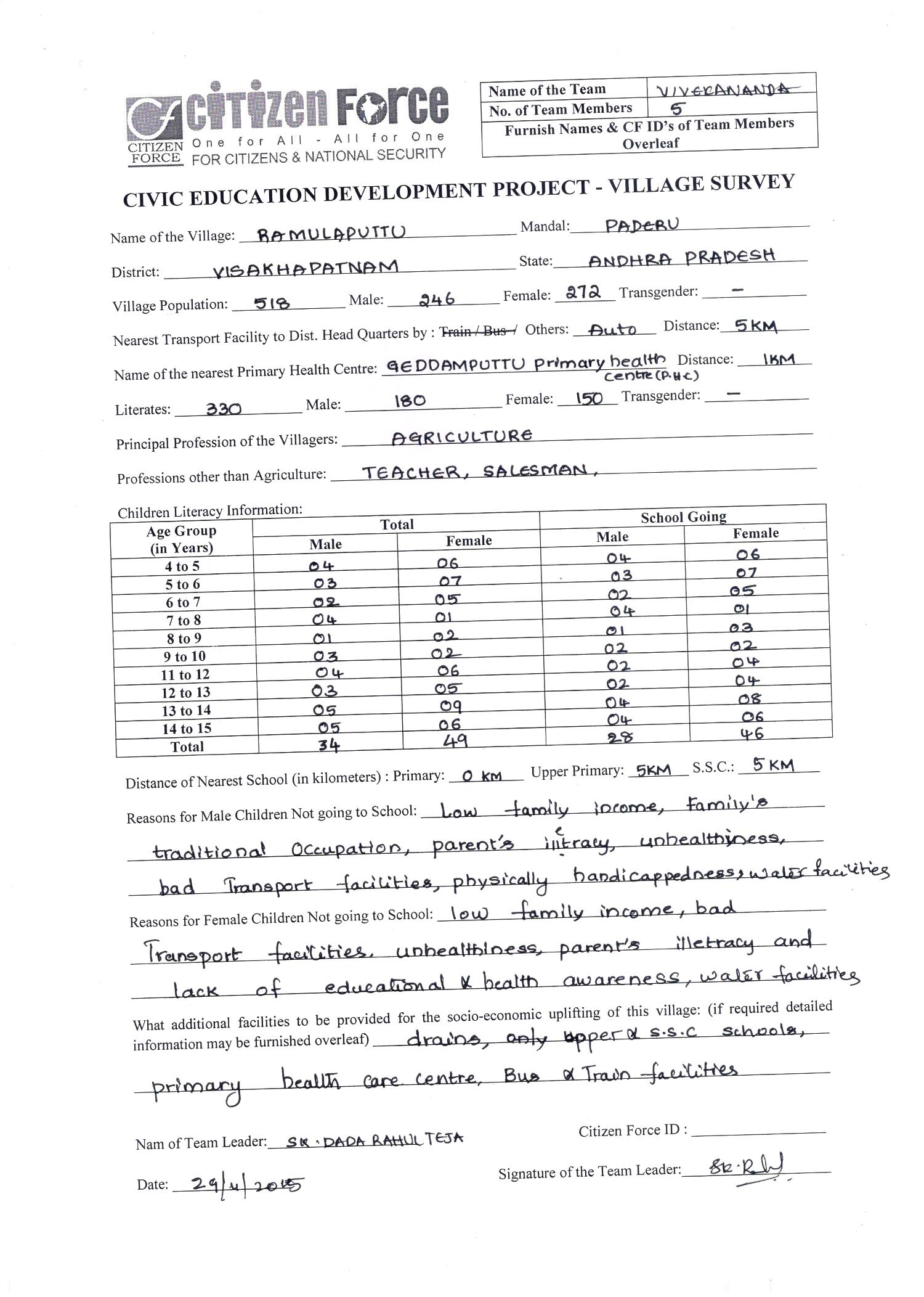 Survey Reports by Student Chapter AUCE (A) - Ramulaputtu Village Paderu Mandal