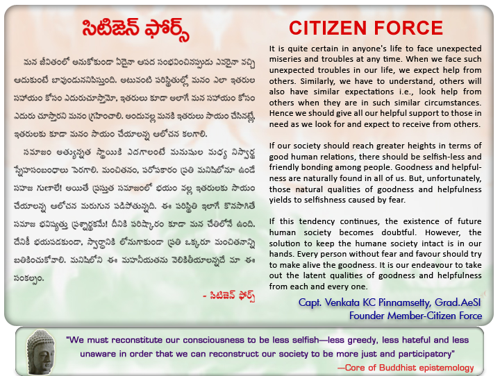 Appropriate authority or bring to the notice of Citizen Force, which will assist